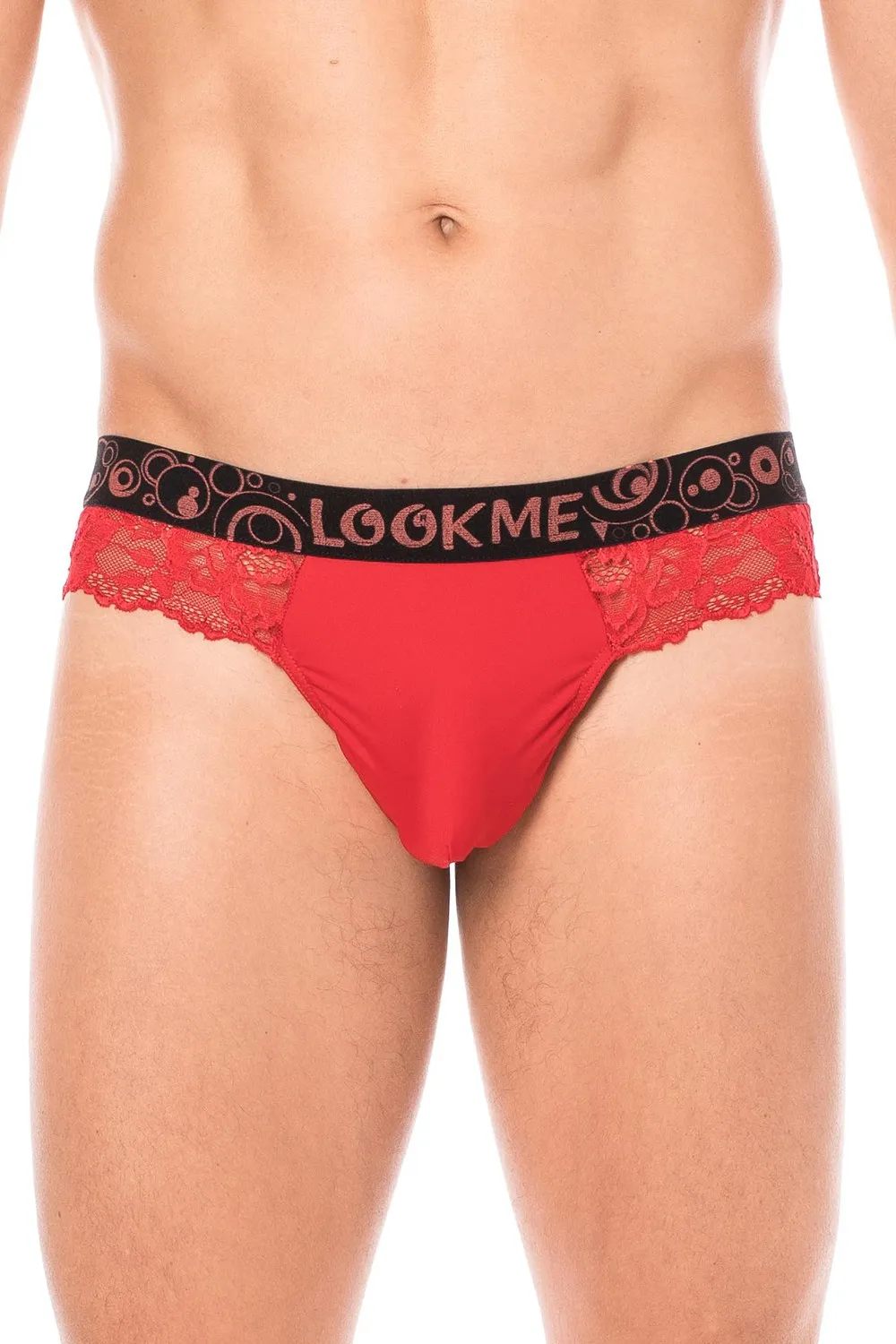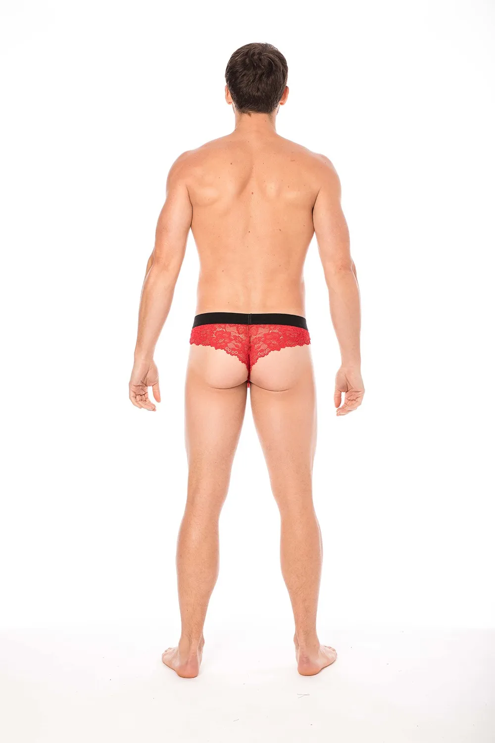 • 1 x String masculin rouge en dentelle florale (collection Lace)